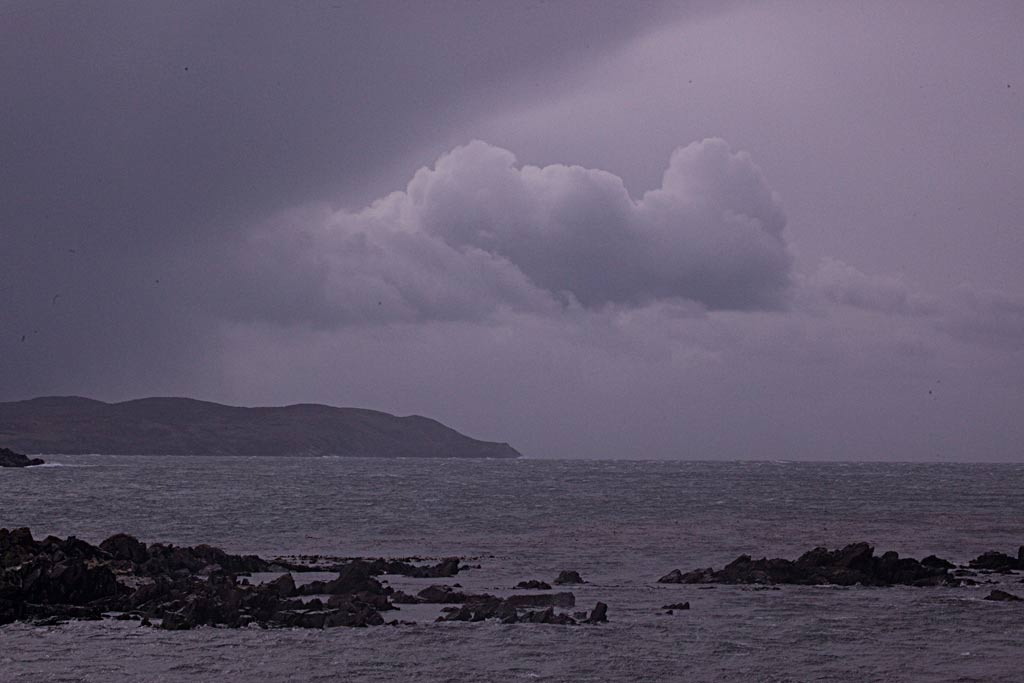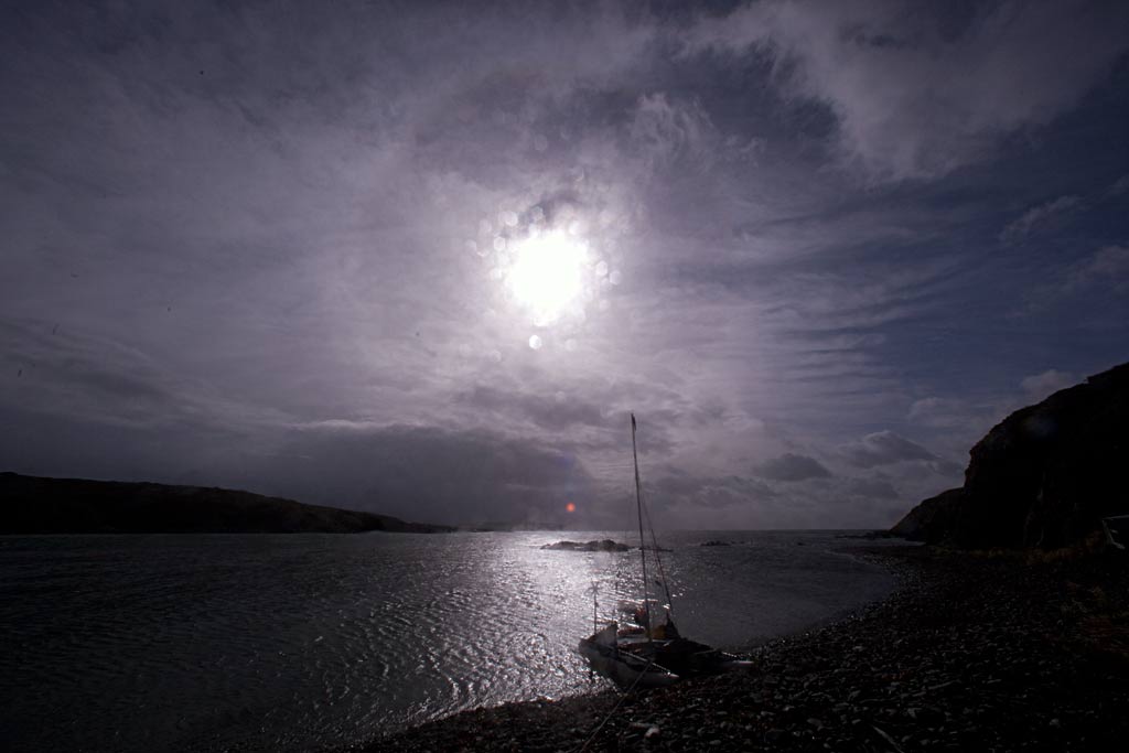 Постепенно перистые облака сменились низкими кучевыми, затем вокруг солнца появилось гало, а затем пришёл шторм.