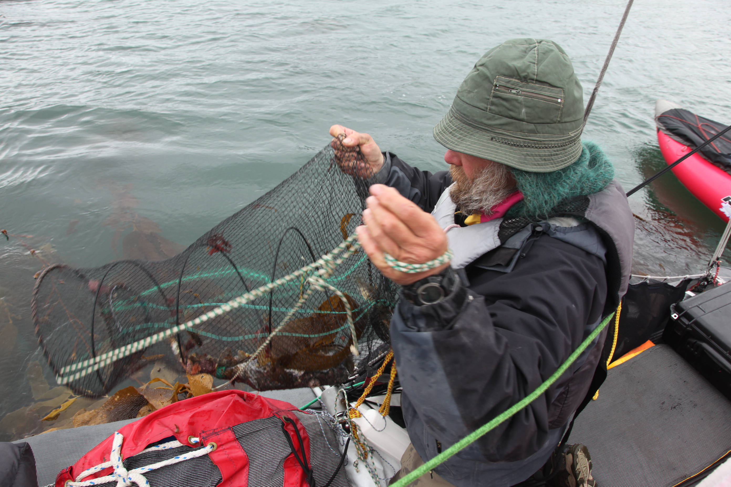 Судя по остаткам крабов на берегу, они тут водились. Мы отремонтировали одну из брошенных ловушек в надежде поставить её в паузе между порывами, но у вы пауз не было.