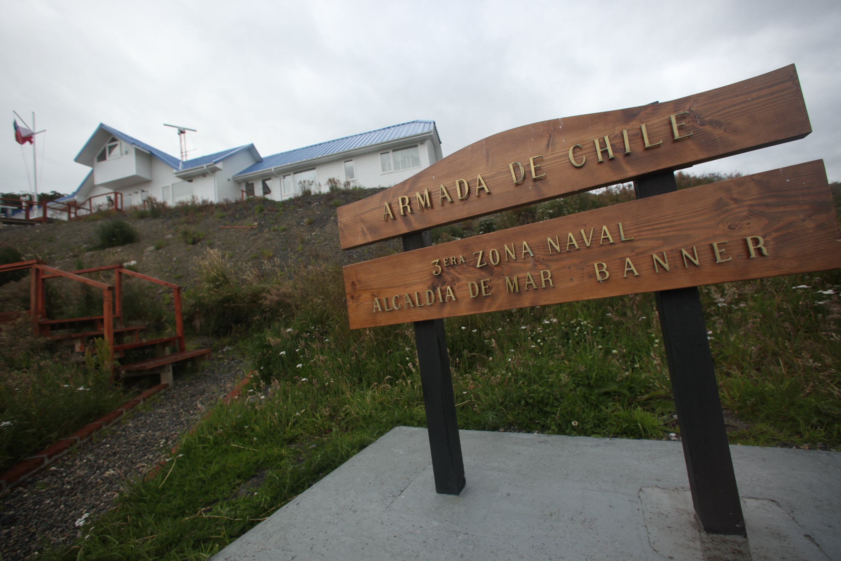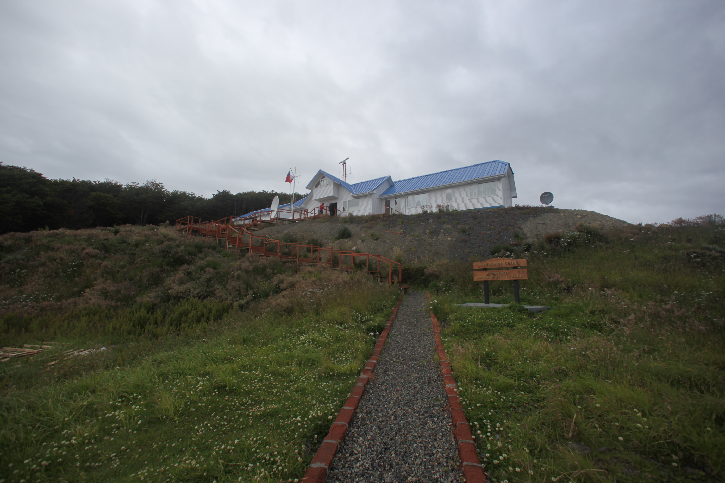 Здание береговой охраны в верх по склону. Скорее всего это расположение выбрано как защита от цунами.