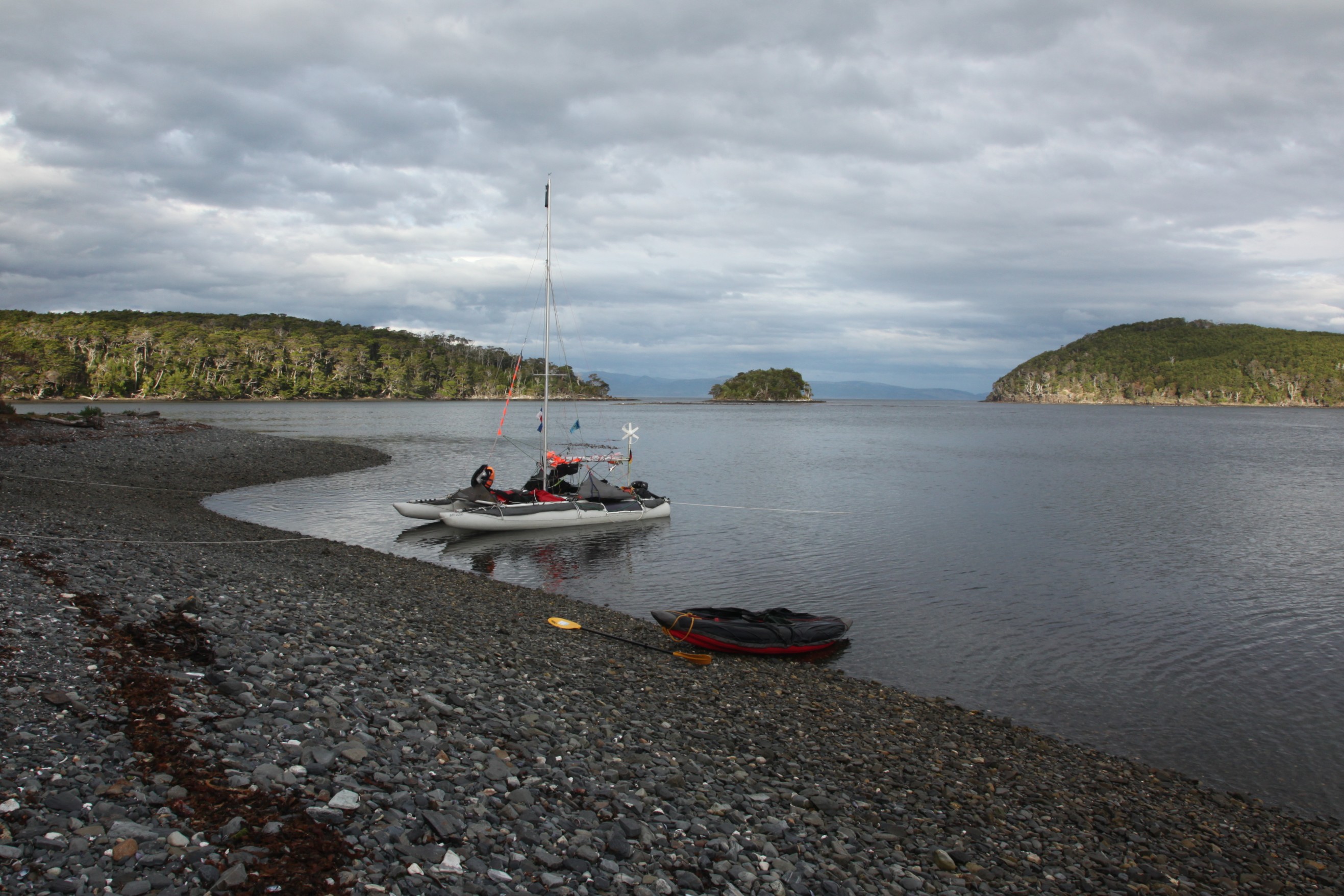 Утром стихло, не совсем, но сильных барашков нетю Ветер с запада. Пакуемся. Постараемся дойти под прикрытием берега до северной оконечности Леннокса, затем в пол ветра до бухты на северном побережье острова Пиктон. Где-то 40-45 км по генеральному курсу.